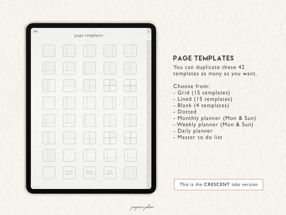 • Comes with 42 page templates (such as grid, lined, dotted, cornell, column, etc) that you can duplicate to the notebook section that you want many times you want