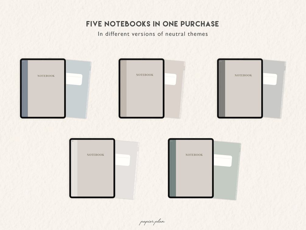 • 5 Digital Paper Texture Notebooks in five color versions: IVORY, CRESCENT, BEIGE, SAGE GREEN, and AZURE
