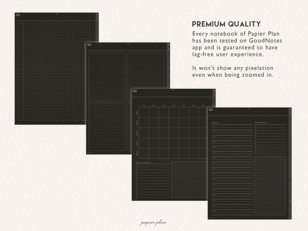 Papier Plan Digital Paper Texture Notebook in Dark Mode is designed to help you keep your notes neatly and study more efficiently. Our notebook has a unique paper-like texture that will create a more realistic traditional note-taking experience.